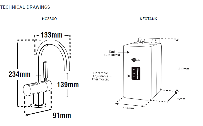 - Unobtrusive 2.5-litre stainless steel tank fitted under sink