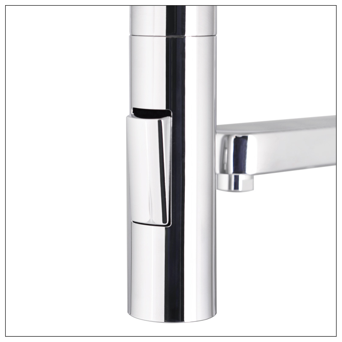 Use the Quarter Turn Hot Cold Selector for easy adjustment. Plus, with two spray patterns available, switch between them quickly using an easily accessible button.